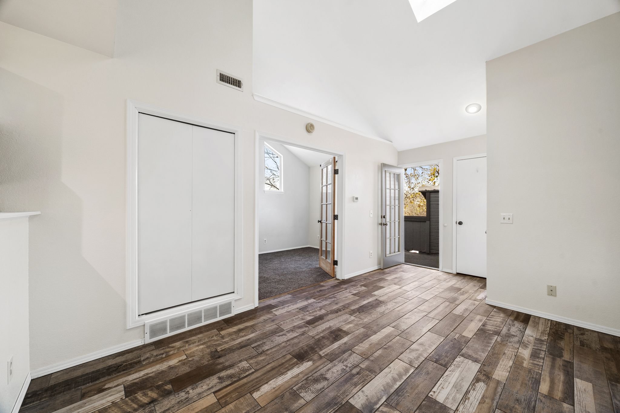 Bright, top floor corner unit in desirable Garrison Lakes Condos for under $200K! This low-maintenance 1bd/1bath feels much bigger than its square footage with high vaulted ceilings, skylights, private outdoor space and a functional, open floor plan. With peekaboo mountain and park views from the northwest facing balcony and direct access to Jack B Tomlinson Park including lakes, a playground and walking trails right out the front door, it’s one of the best locations in the entire community and the most affordable option in the neighborhood. There’s plenty of resident and guest parking outside, and convenient access to I-70, Old Town Arvada and nearby shopping centers just down the road.